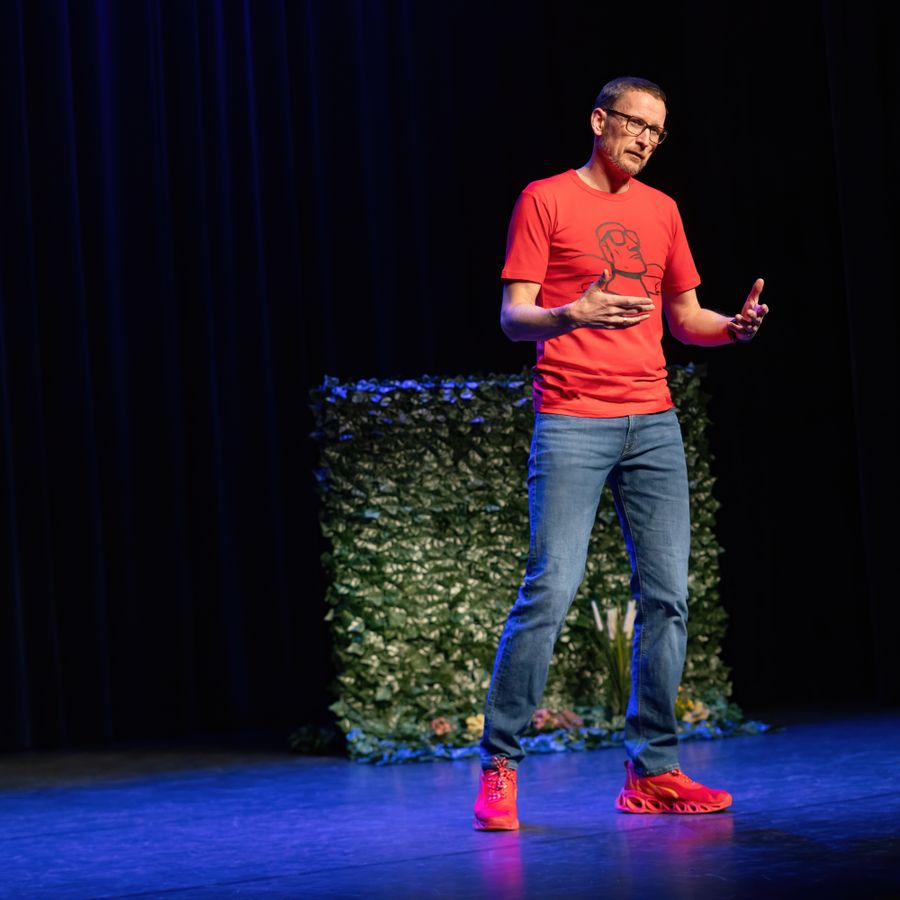 'Met heel veel humor deelt Pieter Jouke zijn opbeurende gedachte' - Theaterkrant